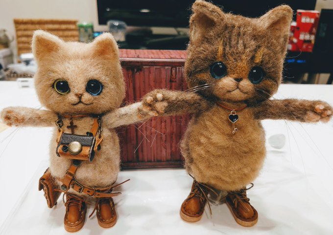 突然ですが… 羊毛フェルトの、可愛い猫ちゃん2体お迎えさせていただきました‼️ めっちゃ可愛い…可愛いしか言葉から出てこない。 ぬい撮りはかどりそうだ😆❤️ お出掛けバックを買わねば。 17センチくらいのぬいちゃんが入るバックないかなぁ~ #羊毛フェルト #猫