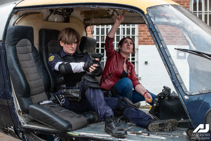 every time I see this I get the helicopter tik tok audio in my head 💔 Photo by @/asperjosh_photography on insta! ✨ #REBHFun #residentevil #residentevilcosplay #leonkennedy #claireredfield #residentevil2remake