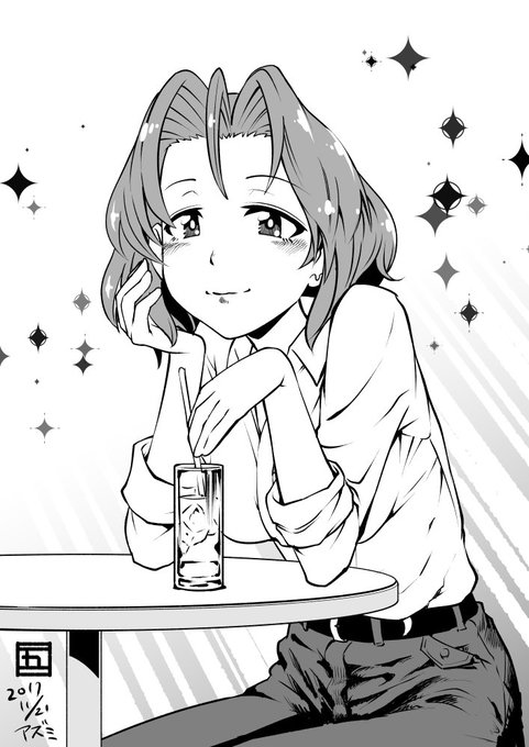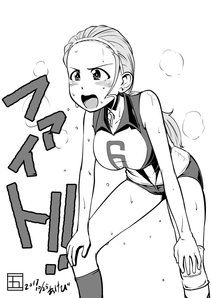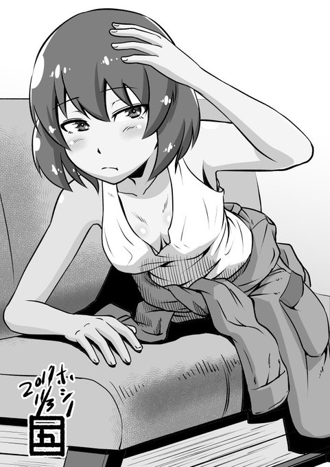 #ガルパン版深夜のお絵描き60分一本勝負 #ガルパン版深夜のお絵描き60分一本勝負_20171103 「ホシノ」 ちょっと熱っぽいホシノです この後ナカジマとスズキに言われて、渋々Tシャツを着たとか
