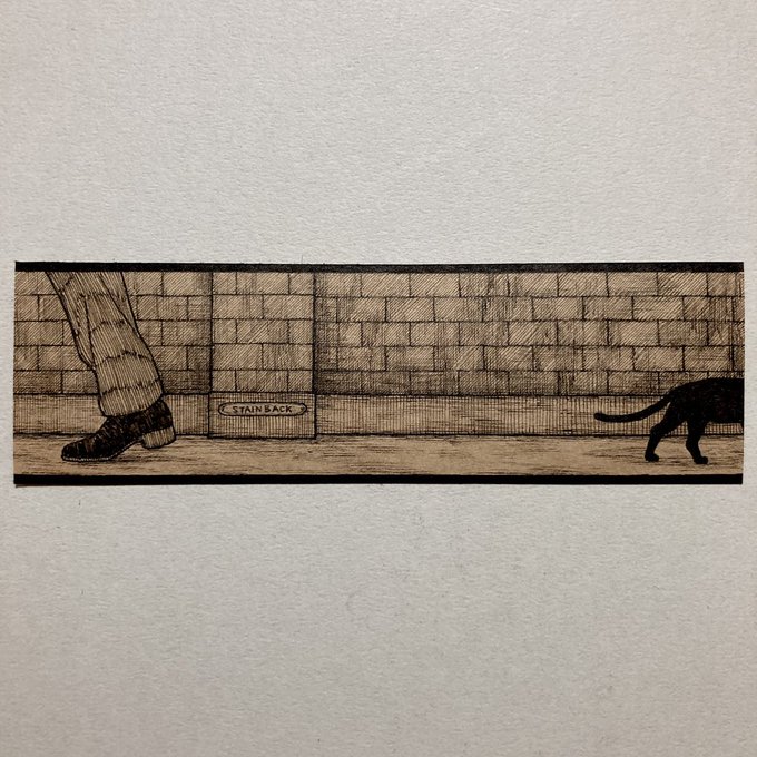 どこにでも現れる、ステインバック。 #線画 #ペン画 #クラフト紙 #しおり