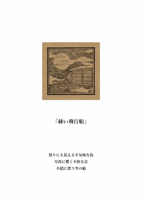 0 5 「赫い飛行船」 #線画 #ペン画 #ミニ原画 23/07/30 10:03