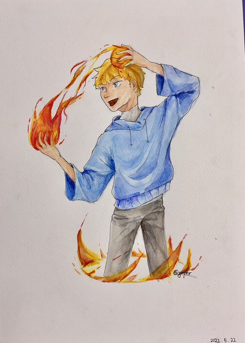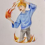 Tommy and fire magic will actually go along well methinks #tommyinnitfanart #traditionalart #watercolor