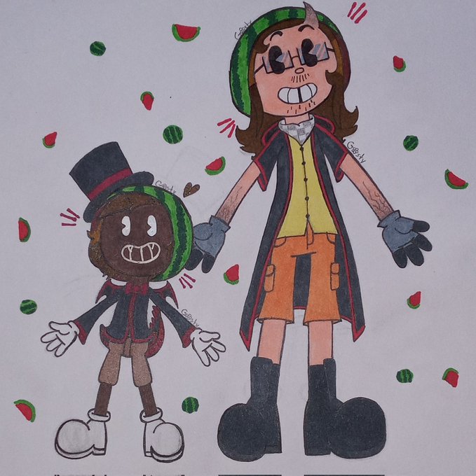WATERMELON BUDDIES!!! 🍉 >:D #bbhfanart #bbh #badboyhalofanart #badboyhalo #qsmpfanart #qsmp #qsmpdapper