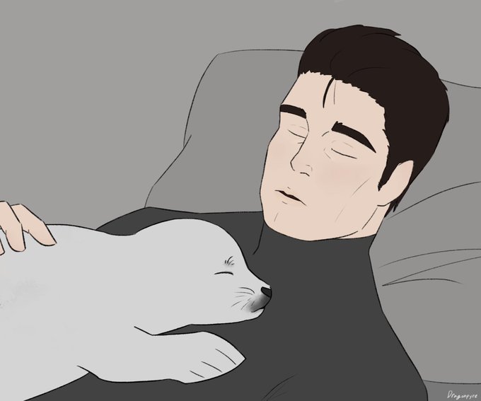 a fun little selkie!jason collab with @DragonpyreArts ! they drew bruce with robin jay and i did bruce and red hood jay :) they are all very sleepy boys. researching baby seal videos is good for your health, 10/10 recommend. (thanks so much for collab-ing w me!!)