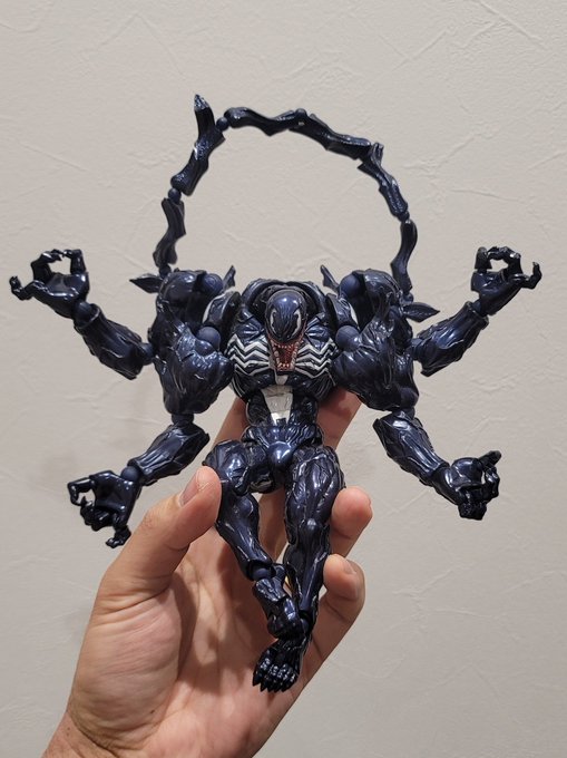 ということで昨日飾ってきました俺のムーンナイトです。頭とアーマーはニンジャスポーン、ボディはブラックアダム、武器は牙狼のキバから。首はめのために削った以外に形状変更は一切していません。お手軽。マントは包帯使ってます。 #ありがとうガリンペイロ #アメトイ改の会