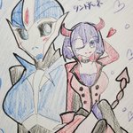 💙トランスフォーマープライムのアーシー&ヒープリのシンドイーネ❤️描いた✨ 中の人が同じ❗😆✨ (伊藤静さんだから✨) #イラスト #トランスフォーマー #トランスフォーマープライム #ヒーリングっどプリキュア #ヒープリ #precure #アーシー #シンドイーネ