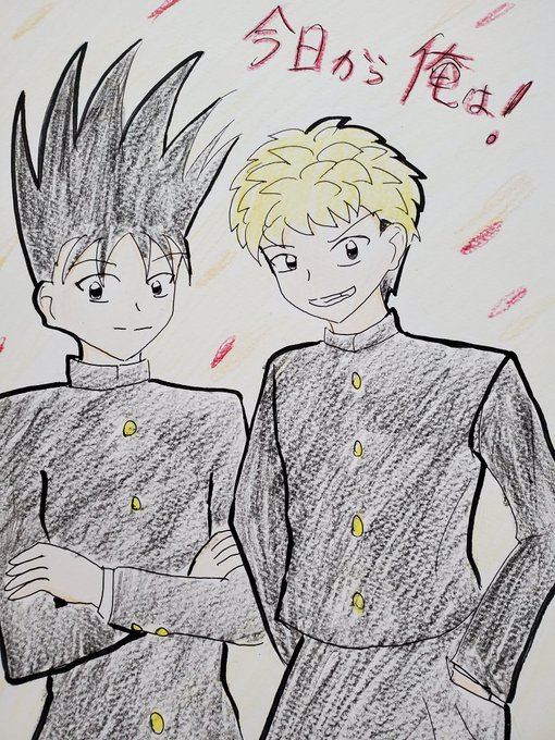 今回のイラスト✏️ 映画観に行ったんで✨ 『今日から俺は❗』 三橋と伊藤🌟 やっぱりうちが男の子描くと可愛いって言われる😂💦男の子』良く描きたい❗ #イラスト #今日から俺は #今日から俺は劇場版