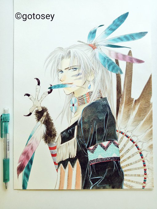 40 210 以前、榎木洋子さんのコピー誌用に寄稿したタギに背景加筆。 タギ、西洋系ファンタジーの人なのに和柄(矢がすり)が似合う…笑 #龍と魔法使い #榎木洋子 22/02/18 13:41