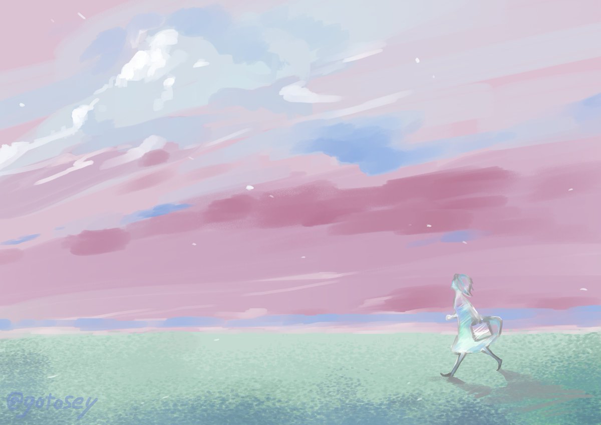 気晴らしにガッシュでらくがき。 (この構図描いてみたかったんだ!🤭) 油絵やガッシュは普段全く使わないので新鮮…でも色の混ざり方がよくわからない💦