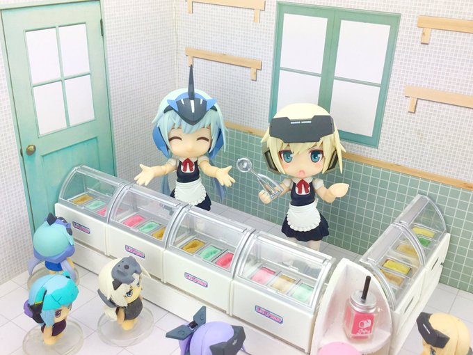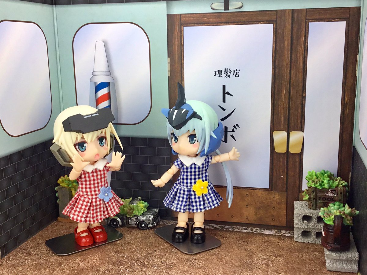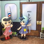 #夜のフィギュア撮影会 #キューポッシュ #フレームアームズ・ガール #FAガール 【7/20 お題 『飛』】【既出】 「お得意様の急ぎの出前なんです❗️お願いします、二人共‼️」 「ま〜かせなさい‼️」 「こんなの私達にかかればひとっ飛びよ🎵」