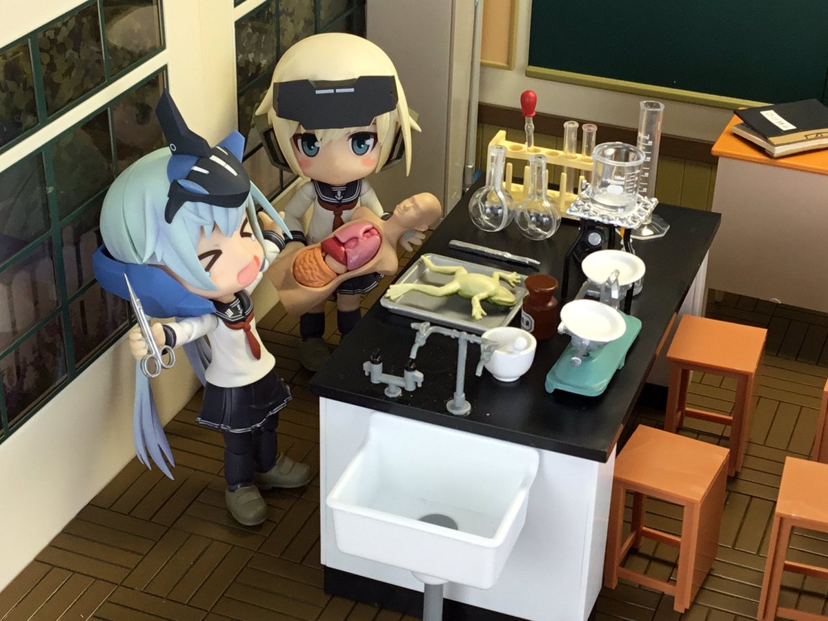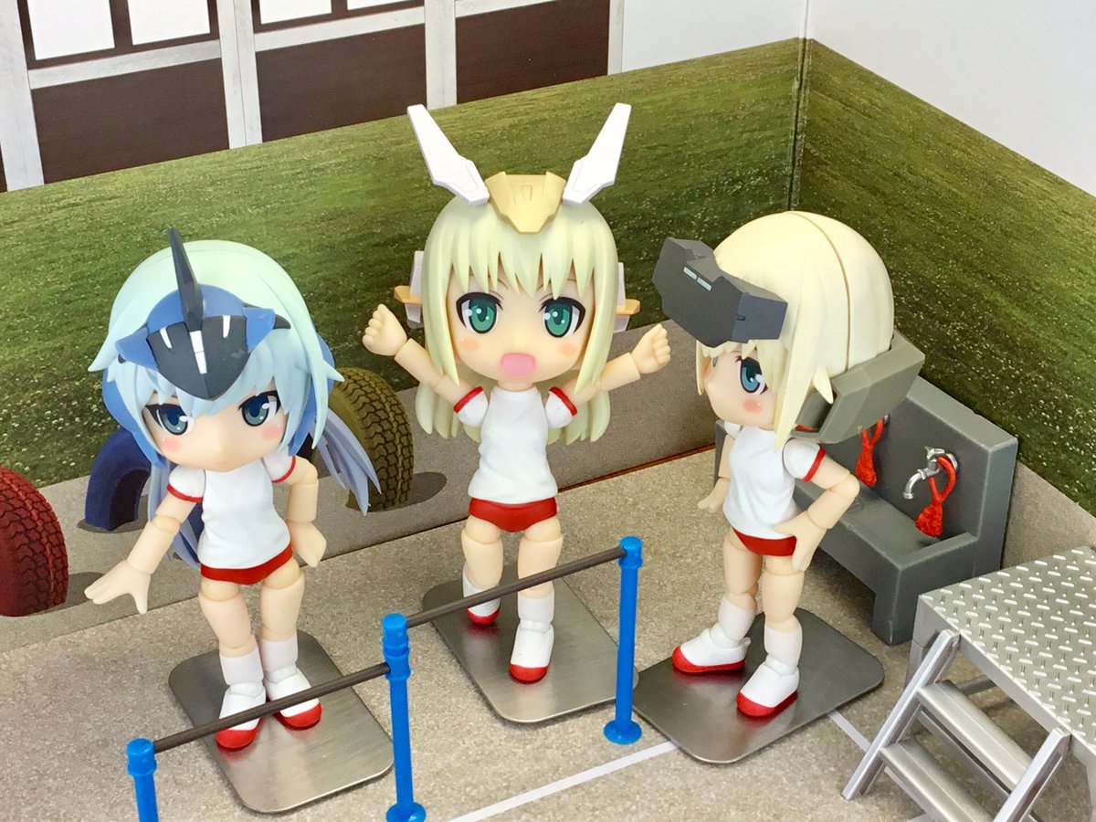 #夜のフィギュア撮影会 #キューポッシュ #フレームアームズ・ガール #FAガール 【7/31 お題 『開発』】【既出】 「おー、ちっちゃ可愛い❗️」 「私達のデータを素に作ったみたいよ。開発部も面白いもの作るわね〜🎶」