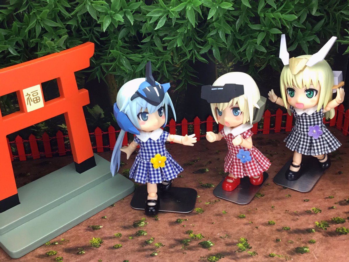 #夜のフィギュア撮影会 #キューポッシュ #フレームアームズ・ガール #FAガール 【7/10 お題 『ウルトラ』】【既出】 「今日は神社でウルトラマンごっこしましょ🎶」 「今日こそはジャンケンに勝って、ウルトラマン役を‥❗️」 「バーゼ、ウルトラマンよりゼットンやりたい‼️強いぞ〜🎶」