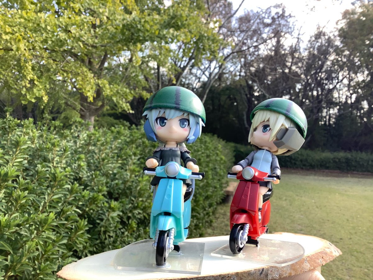 #夜のフィギュア撮影会 #キューポッシュ #フレームアームズ・ガール #FAガール 【7/18 お題 『変化』】【既出】 「もうすっかり夏ね〜。木々も変化してるし🎶」 「そうですね〜。新緑とはまた違った趣きがありますね〜。」