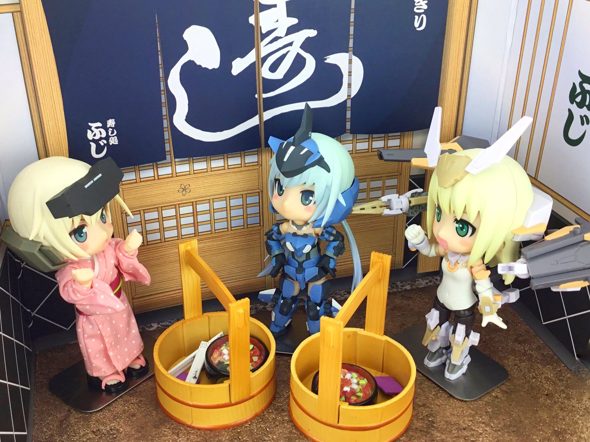 #夜のフィギュア撮影会 #キューポッシュ #フレームアームズ・ガール #FAガール 【8/5 お題 『祭』】【既出】 「さ〜て、次はどのコをすくおうかな🎶」 「こういうのはお祭りならではよね〜🎶」 「普段からあっても盛り上がらなそうですしねぇ。」