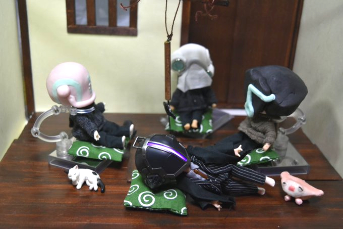 #深夜のねんどろ撮影60分一本勝負 8/13【やど】ちこく グェイラ「あ~疲れたやっときた、ここかあ」 ギャリケー「古民家風の良い宿ですな」 ビドゥー「囲炉裏が暖かいですね」 ボンドルド「…暖かくて眠くなりました。すこし横になりますね」 一同(めっずらしい…明日雪でも降るんじゃね?)