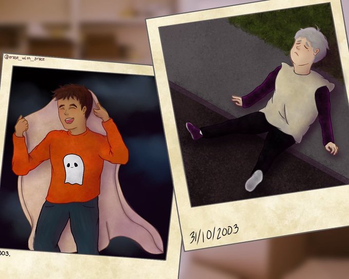 Halloween photos: a blanket and a pillow #haikyuufanart #daichisawamura #sugawarakoushi #daisuga