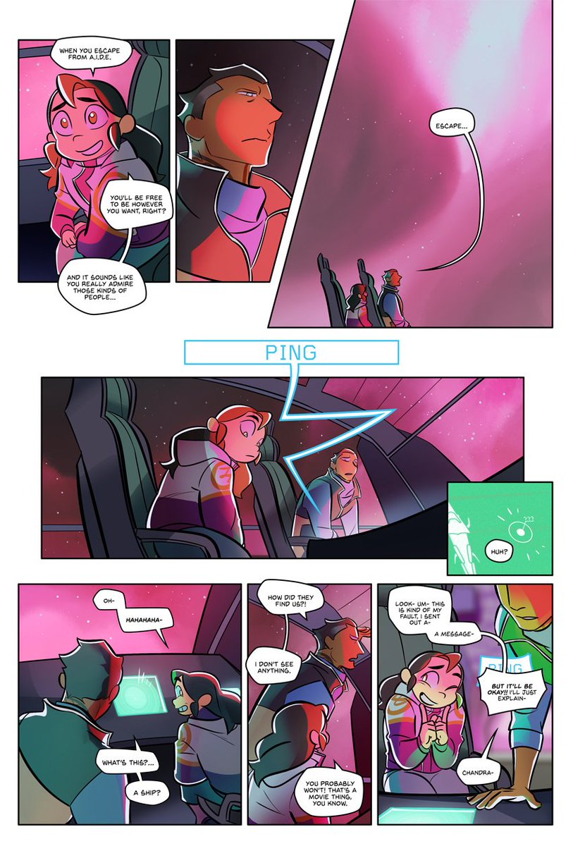 Happy #webcomicday!! ✨️ my webcomic The Otherknown is 8 years old and freshly back from hiatus! It's a sci-fi drama adventure about an accidental time traveler (and galactic organized crime) that's headed in some wacky places. Almost 400 pages now! otherknown.com