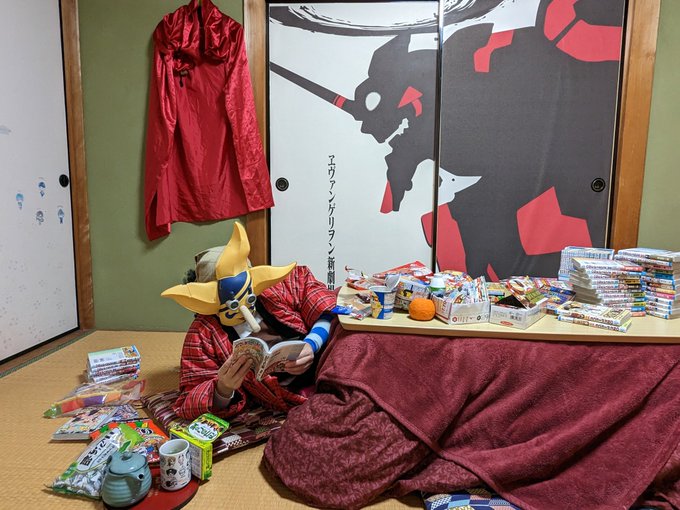 ワンピース新刊早くでないかなー… The right way to read manga in Japan. I can't wait to see the new issue! #ONEPIECE #onepiece #cosplay #onepiececosplay #sogeking #日本の冬はコタツに限る