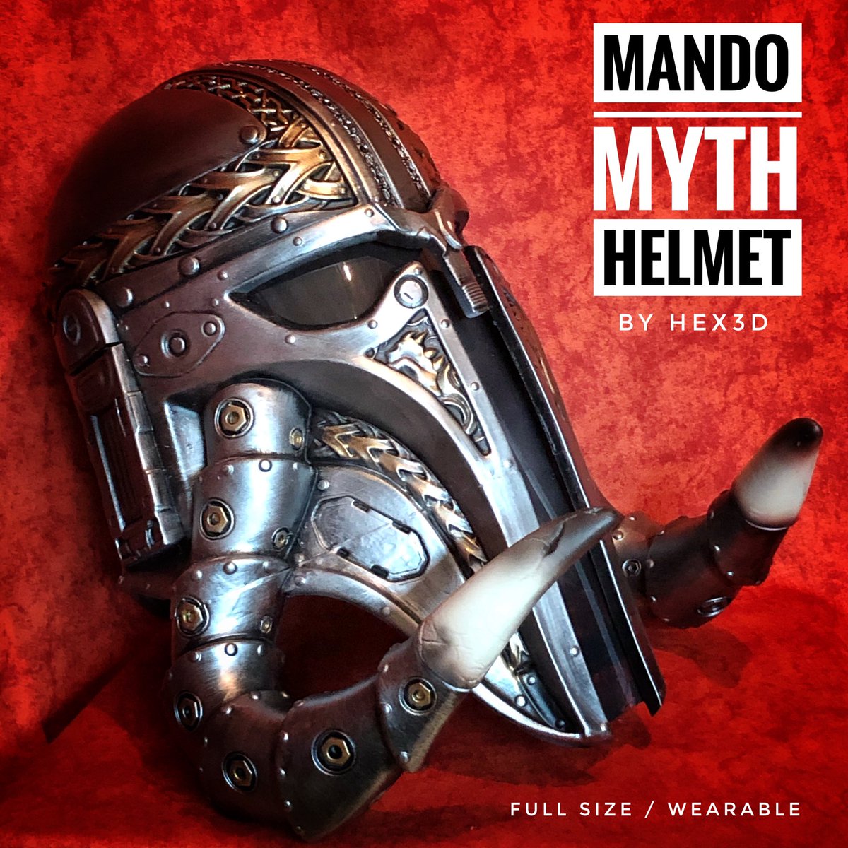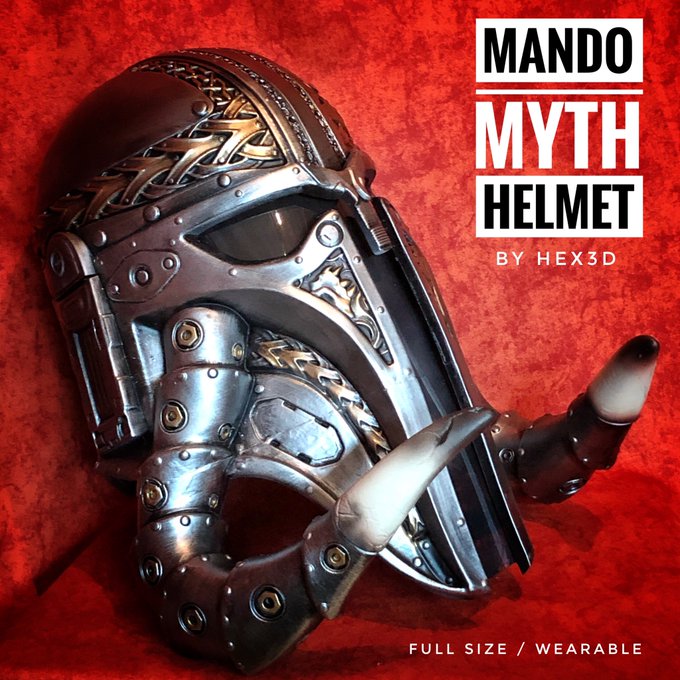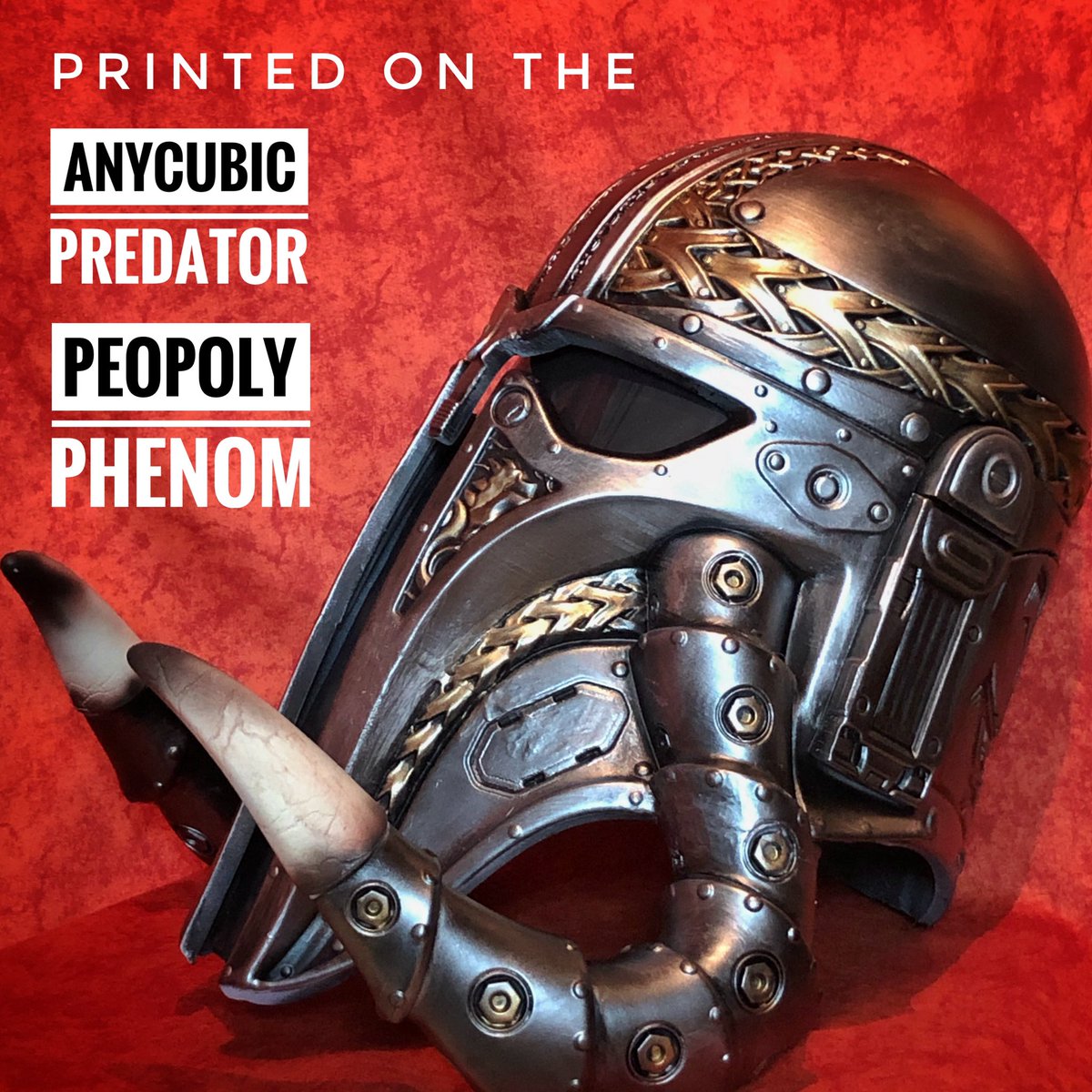 Finished today this beautiful concept helmet modeled by @hex3d_design Mixed print - fdm body, resin horns Printed on the Predator and the @mypeopoly Phenom #TheMandalorian #concept #3dprinting #cosplay #helmet #starwars