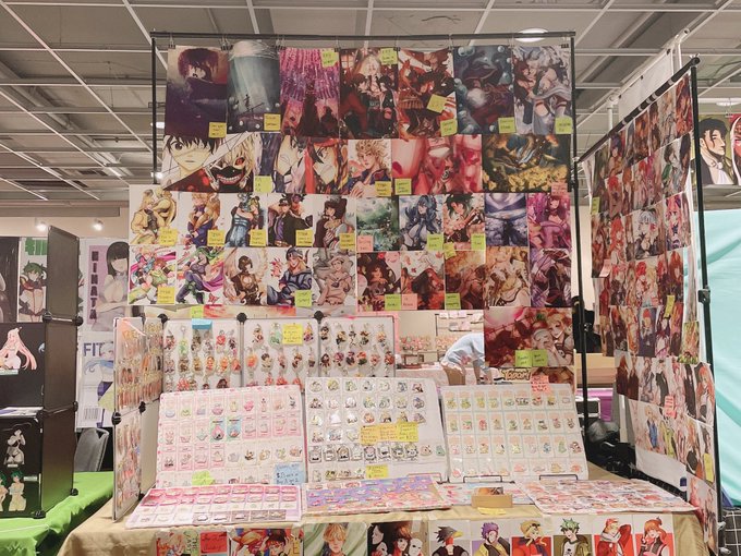 I’m also at @AnimeDallasCon for the weekend and today is the last day! I won’t be there for an hour cause i have a headache but my friend is doing his best to sell Lol #artistalley #myart