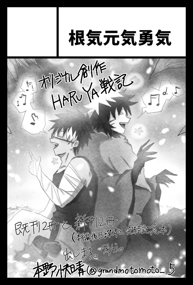 #COMITIA145 スペース決まったので告知します! 本野快晴のサークル【根気元気勇気】は東4 F31aに配置されました〜 初参加です。オリジナル和風バトル漫画新刊2冊と既刊2冊、加えてノベルティ(検討中)配布します。 当日はよろしくお願いします。 (サクカと配布物違う?なんのことやろか???)