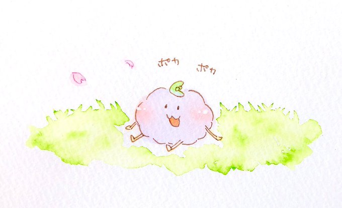 春の陽気♪( ๑⃙⃘・௰・๑⃙⃘ )🌷🍀🌸 #ぐれーぷん #アナログイラスト #オリジナルイラスト #イラスト #水彩 #お絵描き