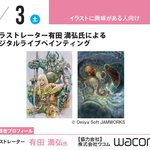 おはようございます。 本日はついに、有田満弘氏によるデジタルライブペインティングです! 13:30~会場への移動開始となっております。 受付もしないといけないので、13:00~13:20くらいにお越しいただけると、スムーズです。 では、お待ちしておりますね! #有田満弘氏 #イラスト #超貴重 #実演