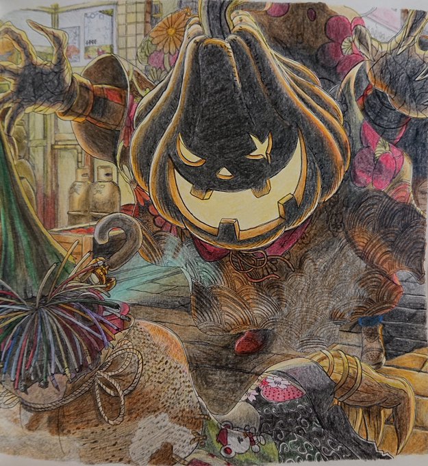やっっっっっ……とのことで記念すべき1枚目が完成✨ _(:3」∠)_ #えんとつ町のプペル #塗り絵 #色鉛筆 #ハロウィン