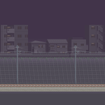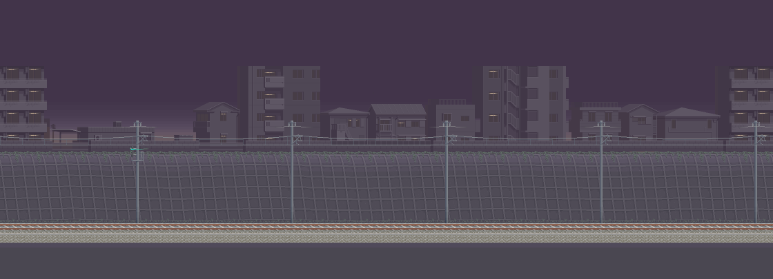3 31 開幕デモシーンとジャンプした時しか画面に入らないけど 擁壁の上の建物もちゃんと描きました 21/10/14 22:05