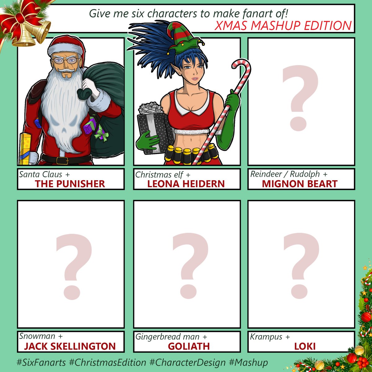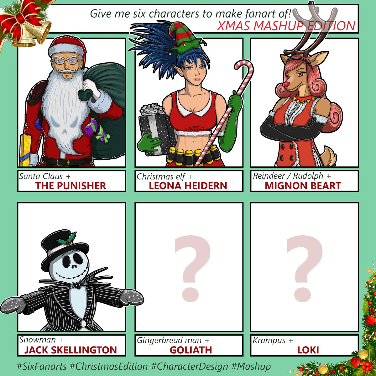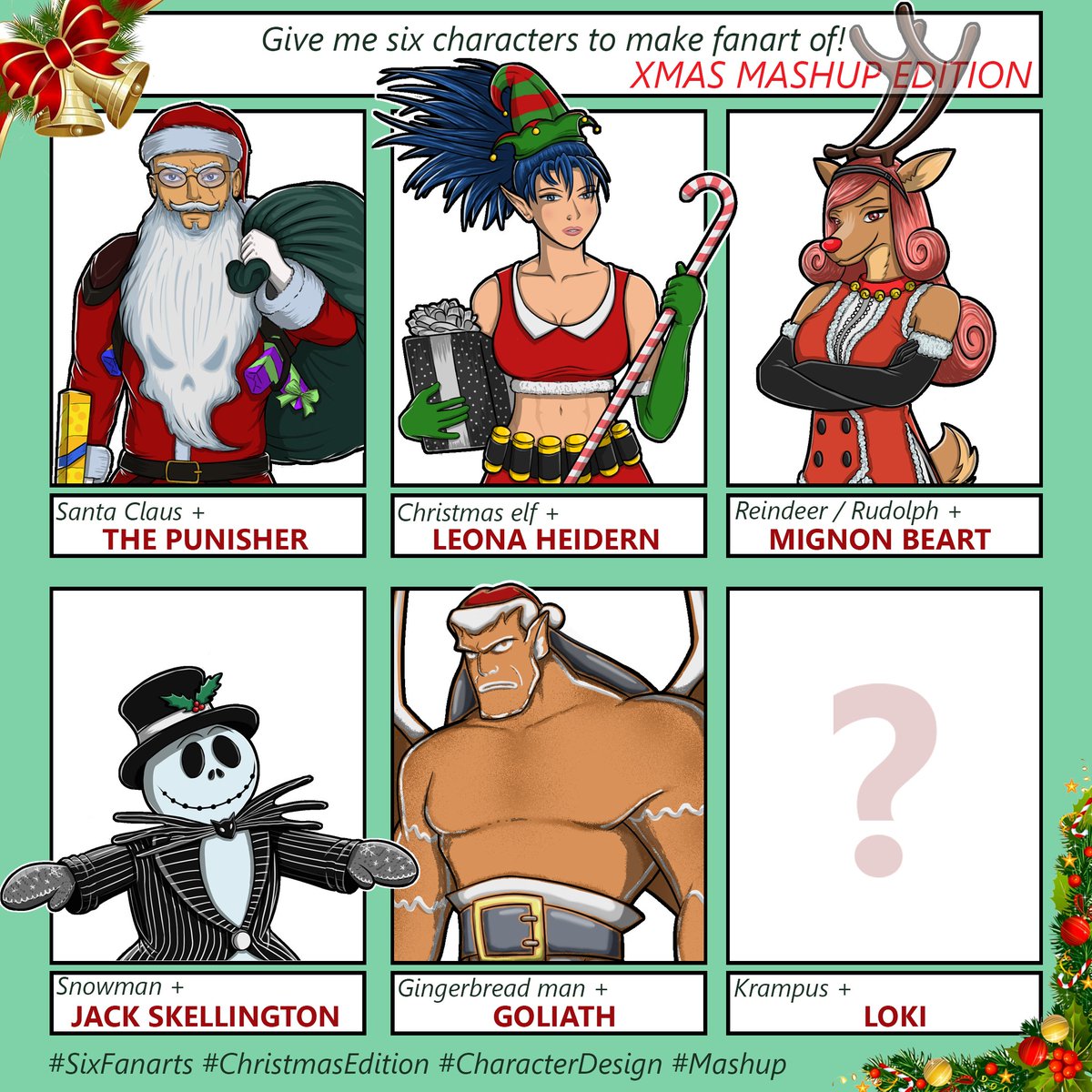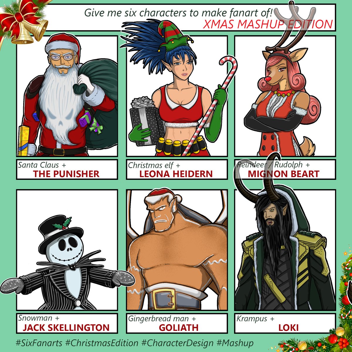 It took me a little bit longer, but finally here are all my drawings for the Xmas Mashup Challenge! 👍 #digitalart #drawing #fanart #characterdesign #sixfanarts #christmasedition #xmaschallenge #mashup #croatianartist #selftaughtartist #grdilicious #grdi
