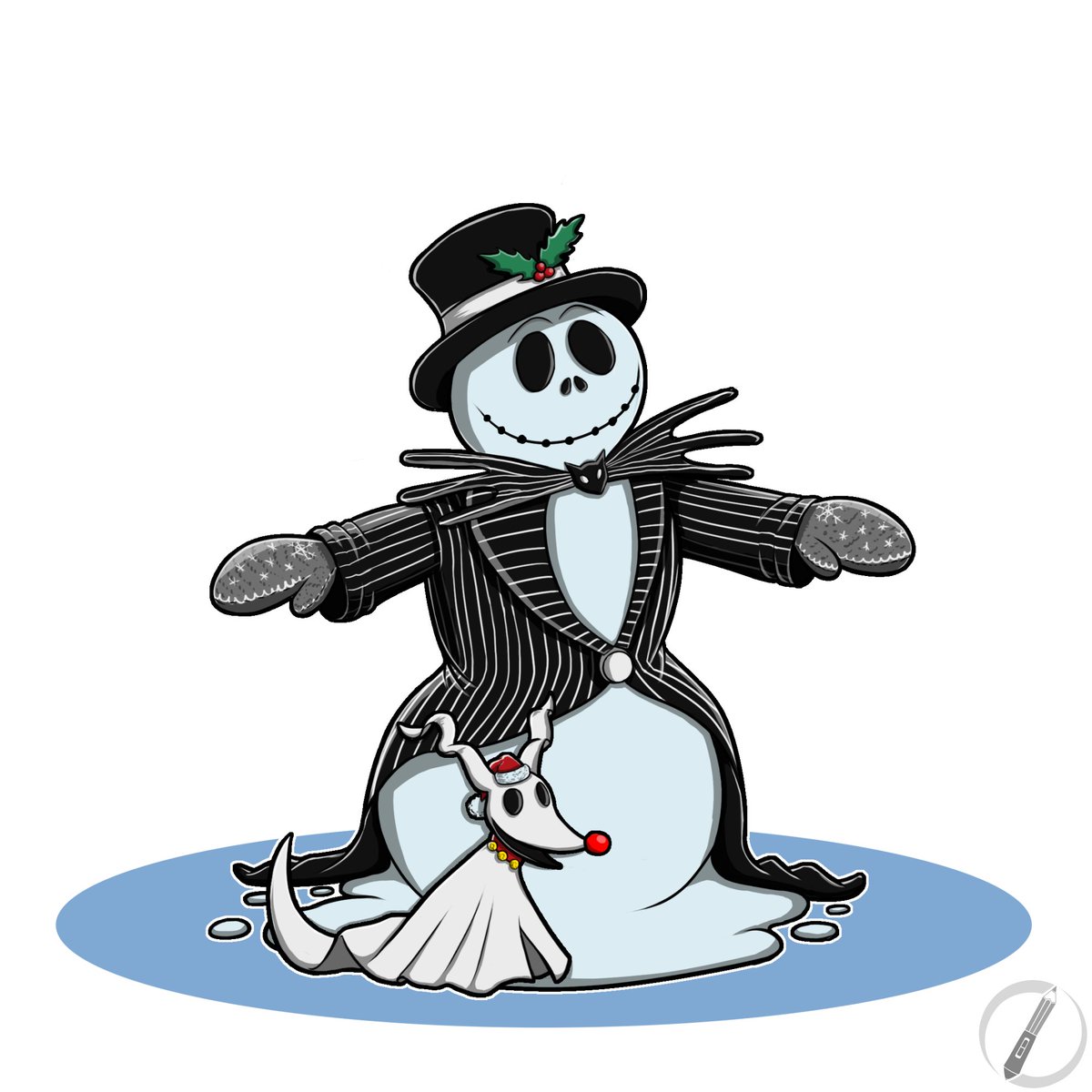 My fourth Xmas #mashup character: #JackSkellington + #Snowman (a suggestion by @CindyMo77804608 + my Xmas prompt + Jazza's Arty Games random generator). #digitalart #drawing #fanart #characterdesign #sixfanarts #christmasedition #xmaschallenge #zero #thenightmarebeforechristmas