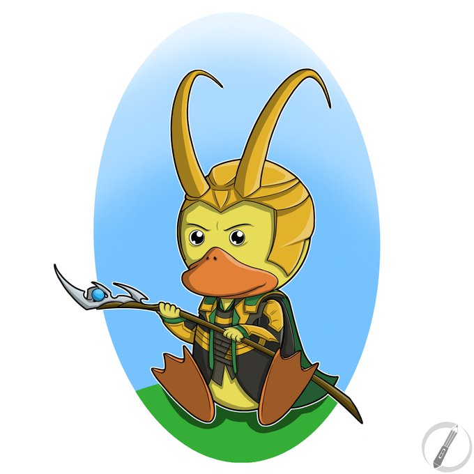 My fourth combo for my #sixfanarts #Easter #Mashup Challenge: a #duckling + #Loki. #digitalart #drawing #fanart #characterdesign #artchallenge #babyanimals #superheroes #marvel #grdilicious #grdi