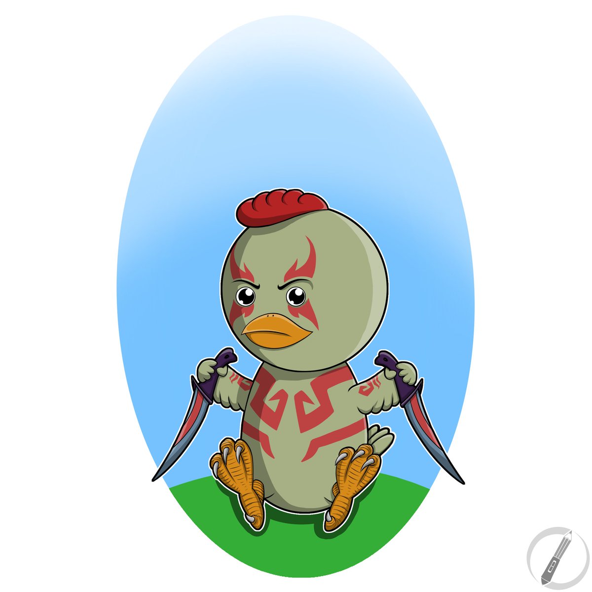 My second #drawing for the #Easter #Mashup #artchallenge, where I combine your suggested #superheroes and #babyanimals. This time it's #Drax from #GuardiansOfTheGalaxy, combined with a #chicken. #digitalart #fanart #characterdesign #sixfanarts #chick #marvel #grdilicious #grdi
