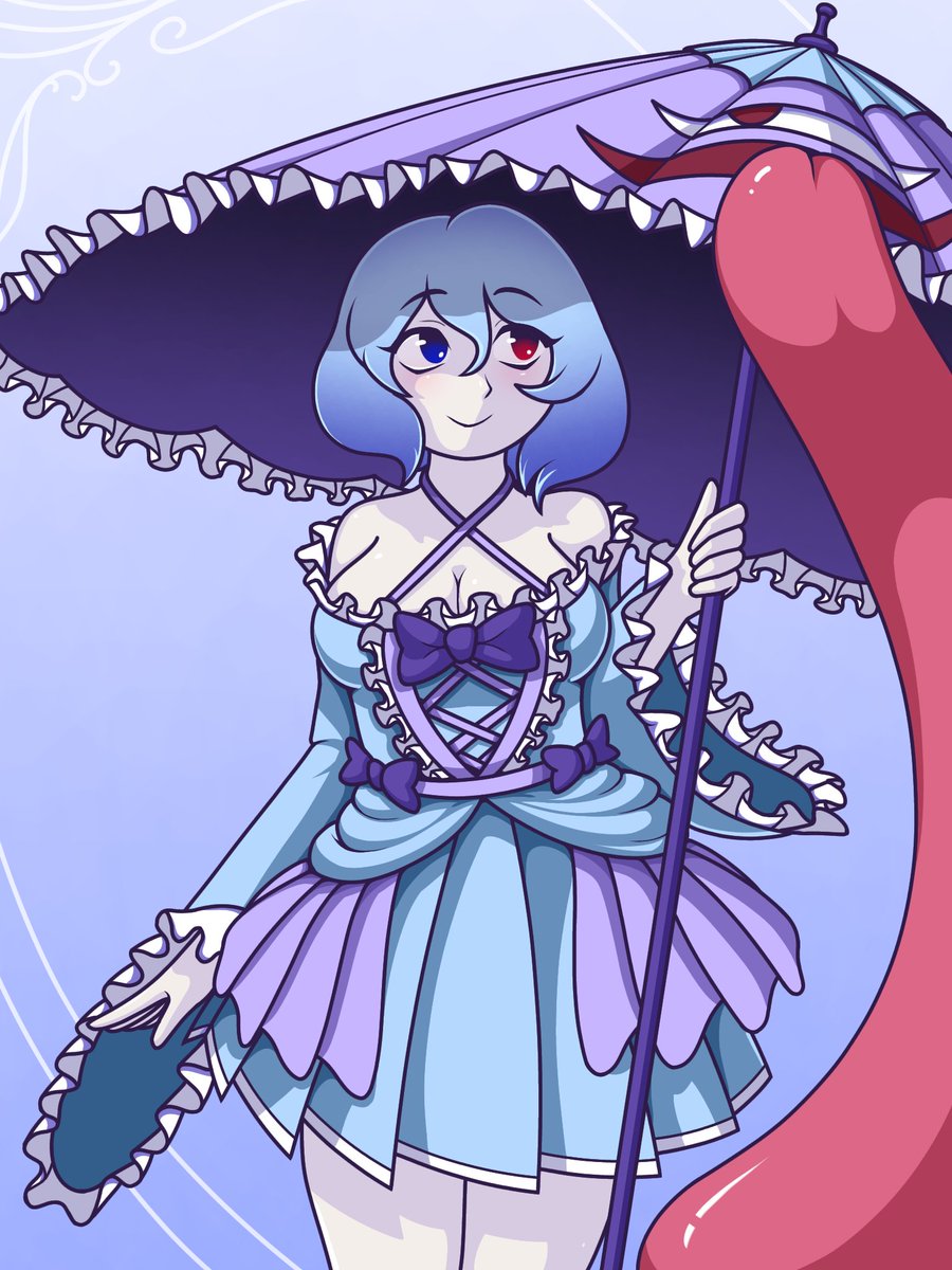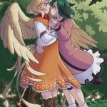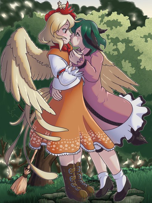 Okay here's the actual finished version of @of_citrus commission of kyouko and kutaka With a tail added to the dog and the layer with the blush and dress pattern layer on