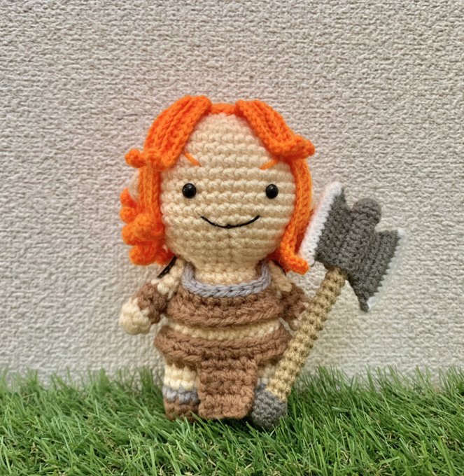 村娘をあみぐるみ化!🧶 ちなみに…まだ増えますw(次を作成中) 3枚目はいつも使っているかぎ針と毛糸😁 今更ですが「編んで作るぬいぐるみ」だから「あみぐるみ」😉 #クラクラ手芸部 #クラクラ #ClashOfClans #あみぐるみ #amigurumi