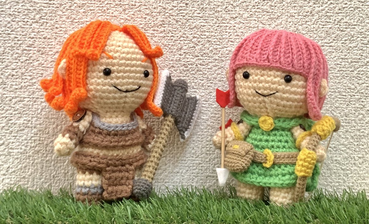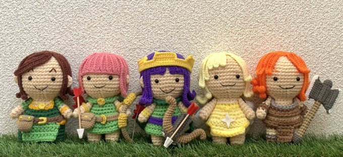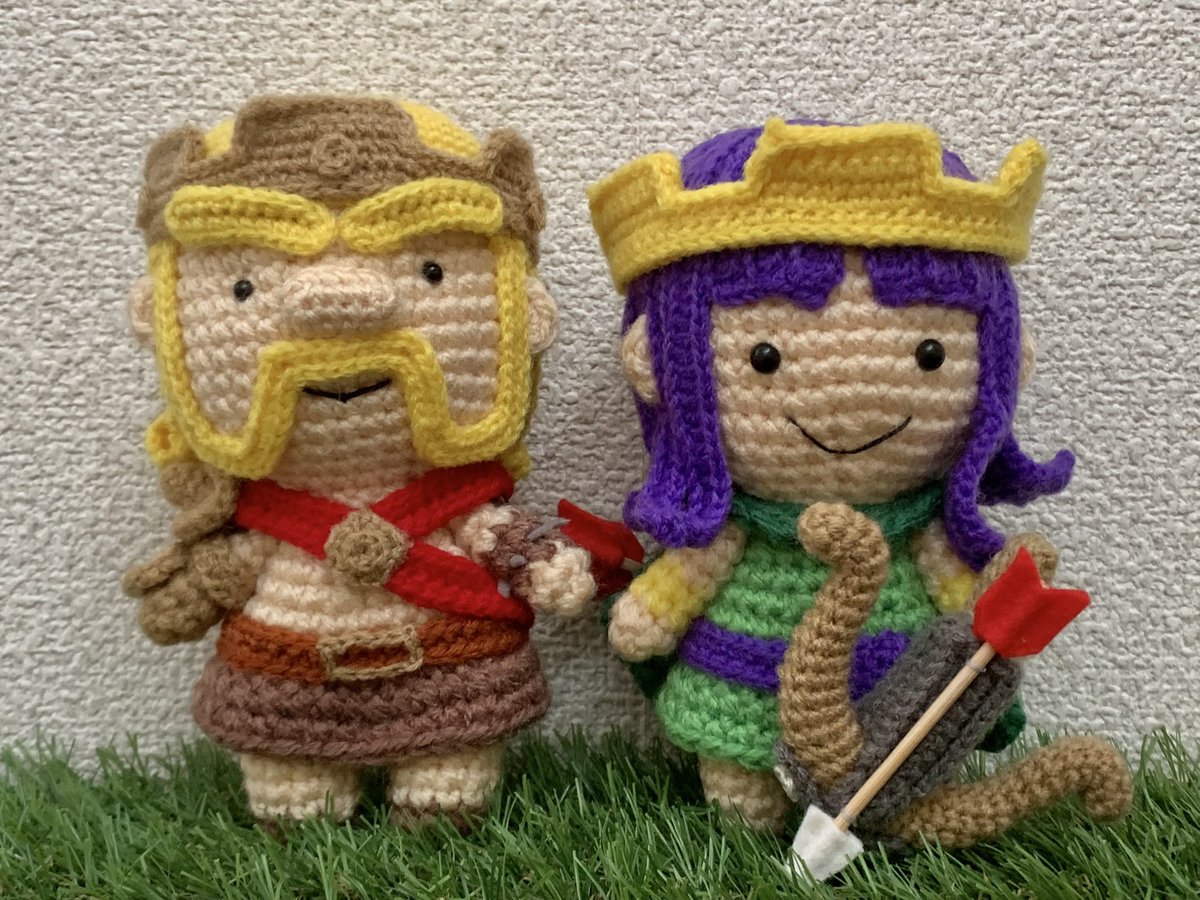 最近 #クラロワ にも登場し、何かと話題のアーチャークイーンをあみぐるみ化!😆🧶 クイーンとアーチャーが姉妹みたい(*´艸`) #クラクラ手芸部 #ClashOfClans #クラロワ手芸部 #ClashRoyale #あみぐるみ #amigurumi