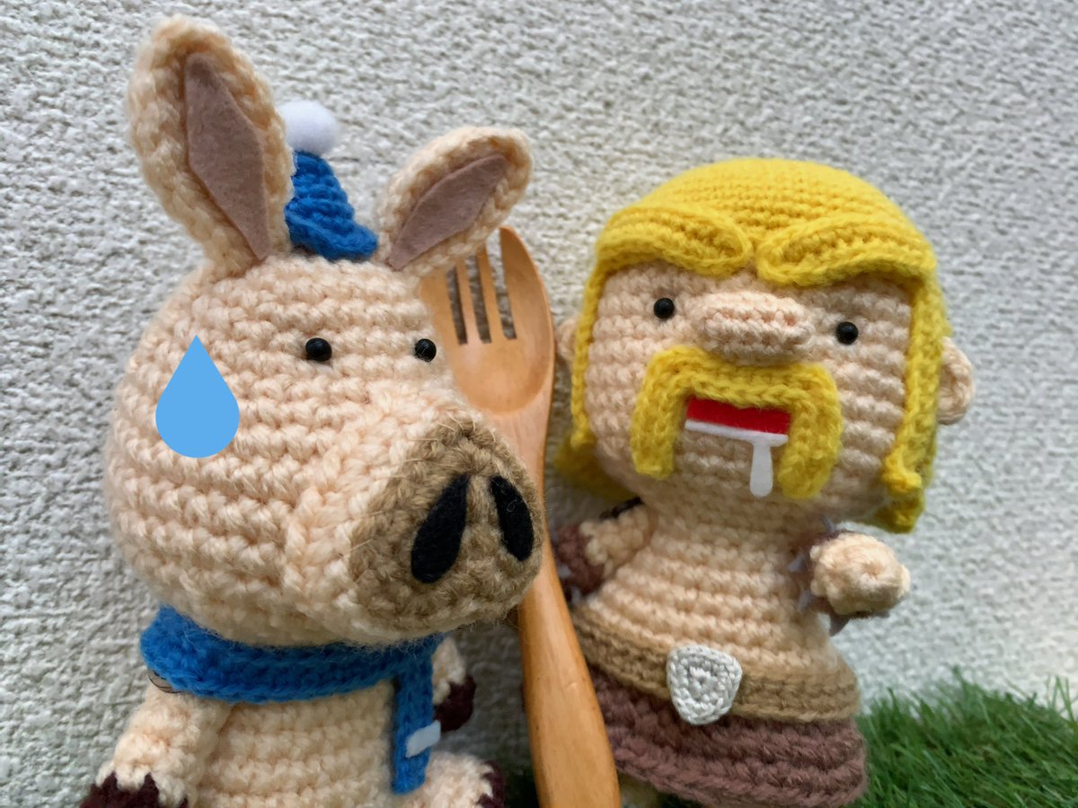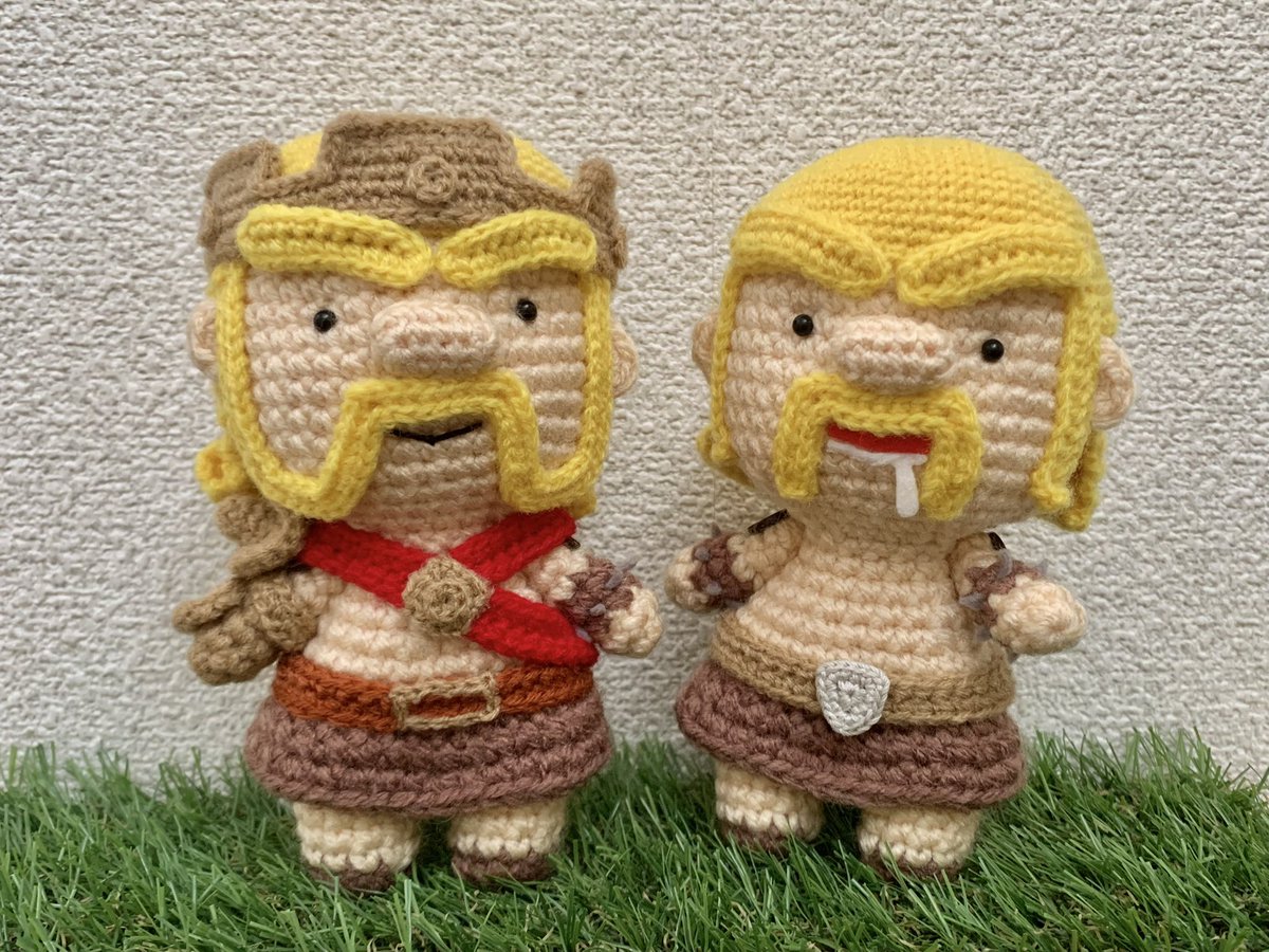お久しぶりのあみぐるみ!🧶 バーバリアンキングを作りました👑⚔️ 髭がチャームポイント🧔♂️✨ #クラクラ #ClashofClans #クラクラ手芸部 #あみぐるみ #amigurumi