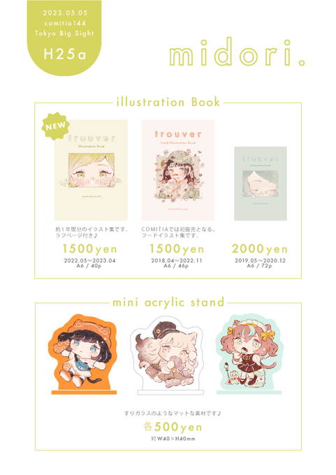 🍀コミティア144お品書き🍀 ・5/5(金)東京ビッグサイト H25a ・商品ご購入の方には、先着順でメロンちゃんのチェキ風カードをお渡しいたします🍒 #コミティア144 #COMITIA144