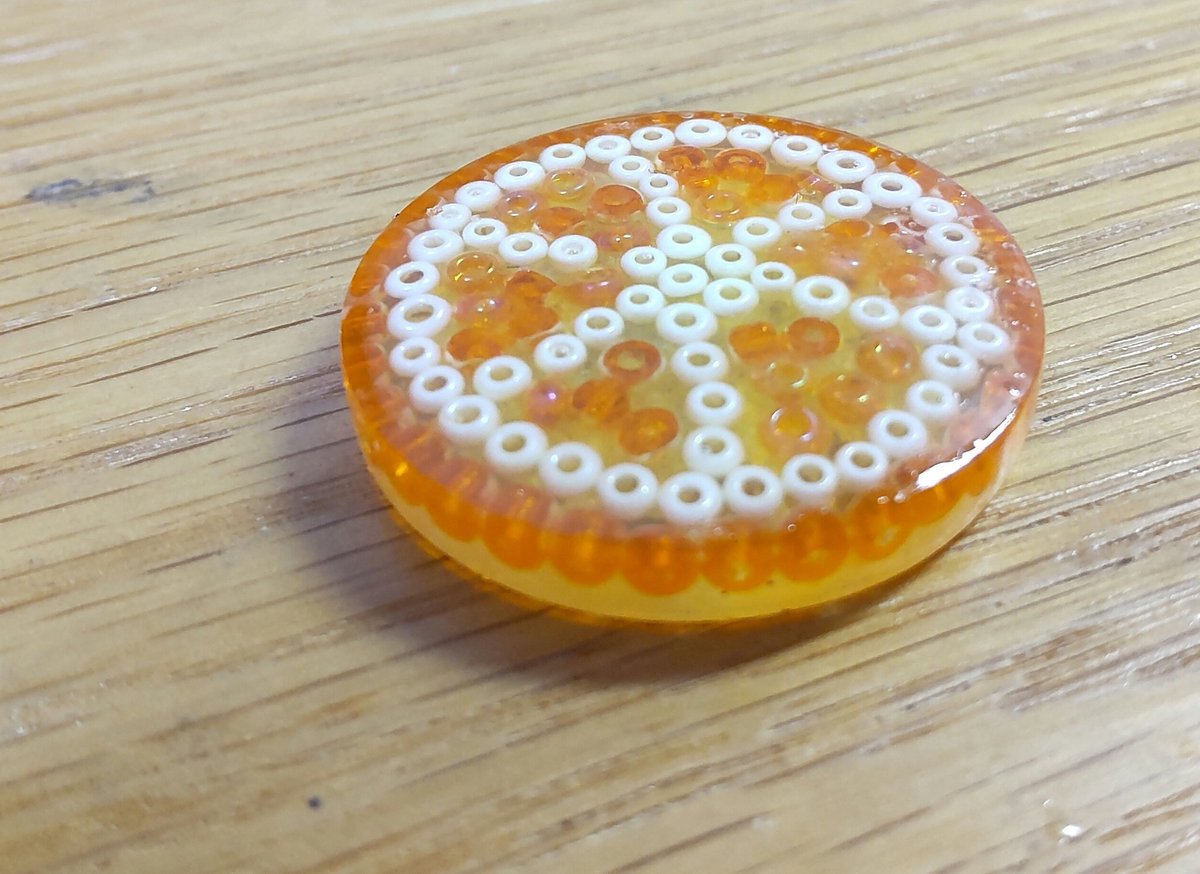オレンジ🍊 ビーズたくさん並べました… _(›´ω`‹ 」∠)_ 裏側も実はお気に入りです✨ #レジン #ビーズ #イラスト #フルーツ #オレンジ