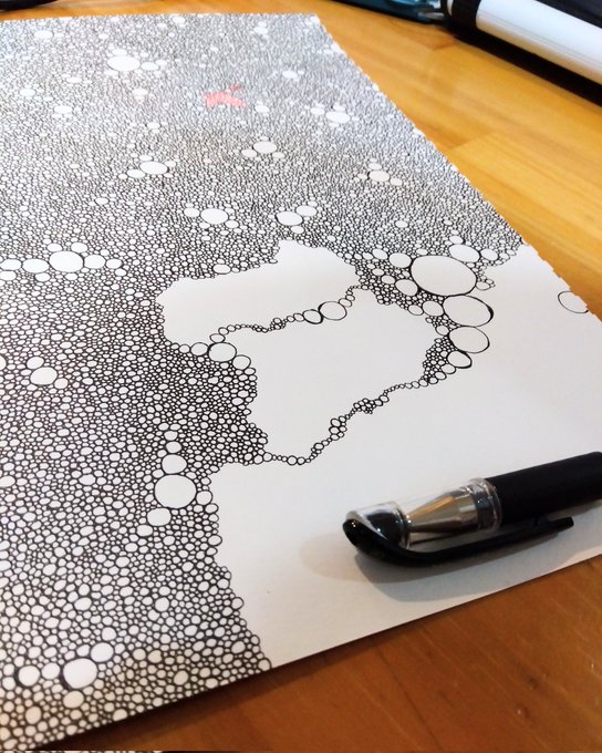 ほい進捗 終わりが見えてきた、、、気がする #絵描きさんと繋がりたい #ペン画 #ボールペン