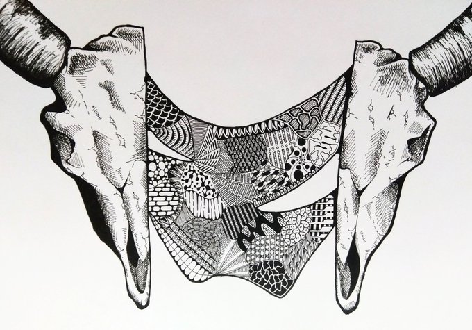 再掲 "Memento mori" モチーフ 鹿の頭骨 #イラスト #絵描きさんと繋がりたい #フォロバ100