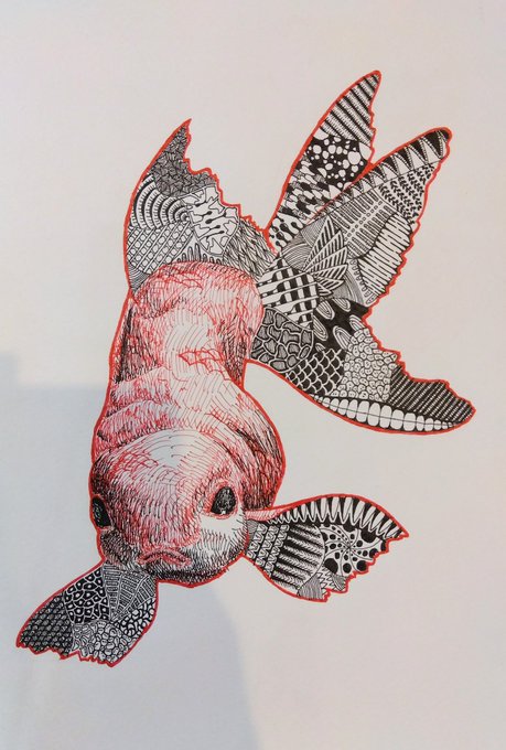 題名"Dream" モチーフ 金魚 #イラスト #ボールペン #絵描きさんと繋がりたい #フォロバ100