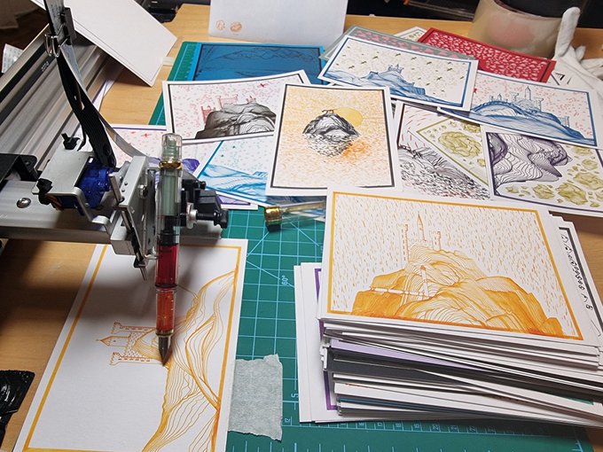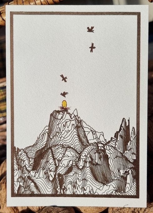 Nest and Eagle (4/4) #Inktober (9 & 11) #plottertwitter and yet another one with the same code 🤗 (#generativeart allows infinite variations) See all my inktober entries: greweb.me/plots/tags/ink… – as you can guess now, my guidelines is to make only mountains postcards format 🙂
