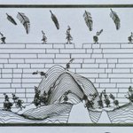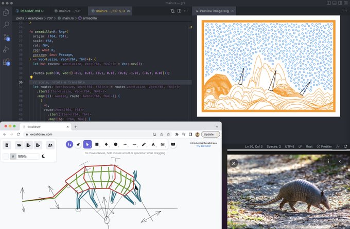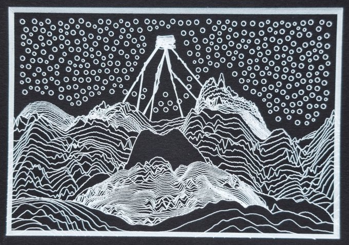 "Scrape" #inktober #plottertwitter #generativeart experiment on making a lot of scratches in the mountains and sky. strokes are placed in the sky using a few layers of circles packing, which creates an interesting distribution – oriented with noise field.
