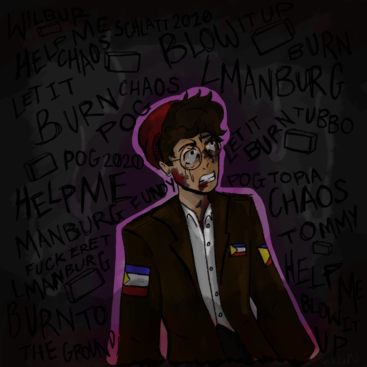 happy 16th everyone!!! one year since LManburg was destroyed and one year since I joined the fandom :)))) rip c/wilbur I guess #dreamsmp #dreamsmpfanart #dsmp #november16th #wilbursoot #mcyt #mcytfanart #lmanburg #dsmpfanart also same drawing done a year later :)