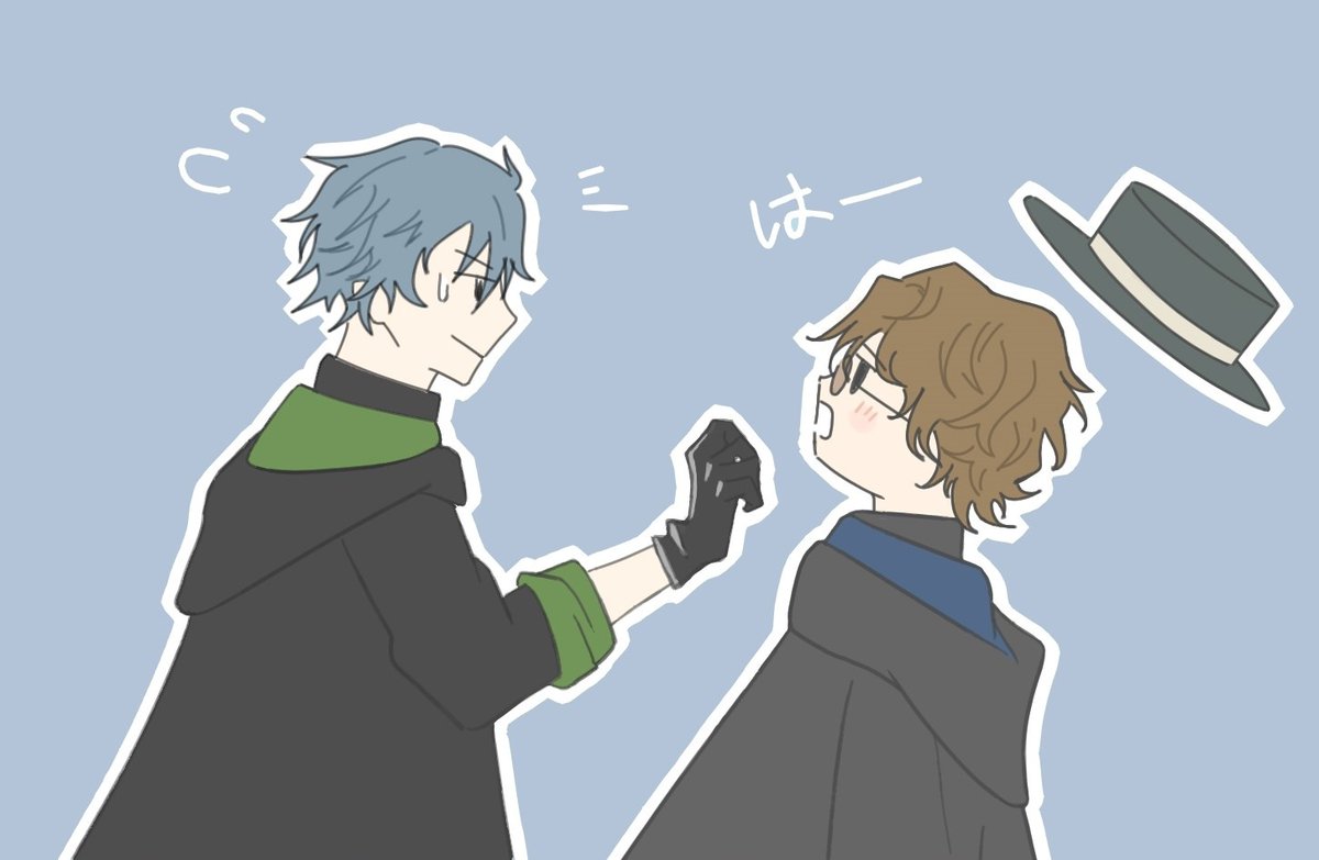 フィガロ:(ちょっと触って...) ファウスト:は——(‵□′) フィガロ:😰💦 (親友に描きます~) #まほやく_FA