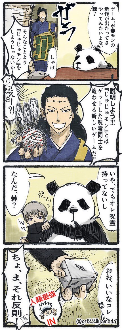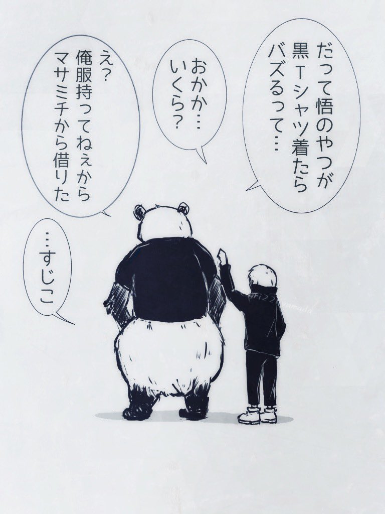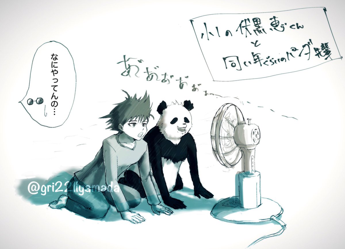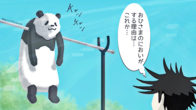 あれは、誰だッ!誰だ!誰だぁああ!? 悪魔のチーカーラー 身につけたあぁぁあ↑↑↑ 正義のヒィーロォー↑↑↑ パンダマァ〜ン パンダマンッ!! ※元ネタ知ってる方、ぜひ仲良くしましょう。 #呪術廻戦ファンアート