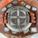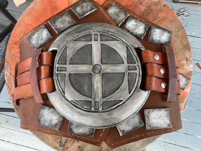 Pictured here are the only two remaining pieces of the original cosplay. The hammer and the gut plate both made by @Pineapple_Props (tho I had @DoomforgeD mod the hammer for travel and upkeep) My own lil Ship of Theseus. #cosplay #HorizonForbiddenWest #Erend #oseram4lyf #leather