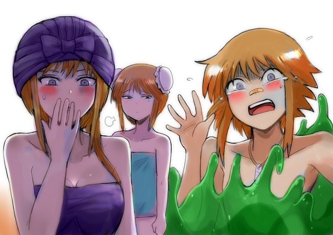 スライム風呂にはまってしまったプルファイブを眺めるプルフォウとプルイレブンです。