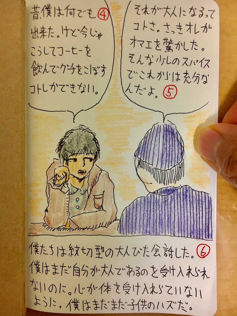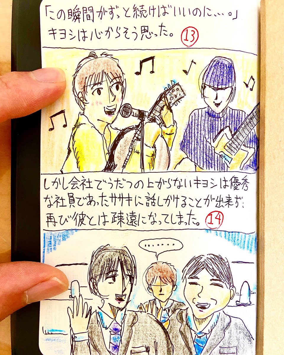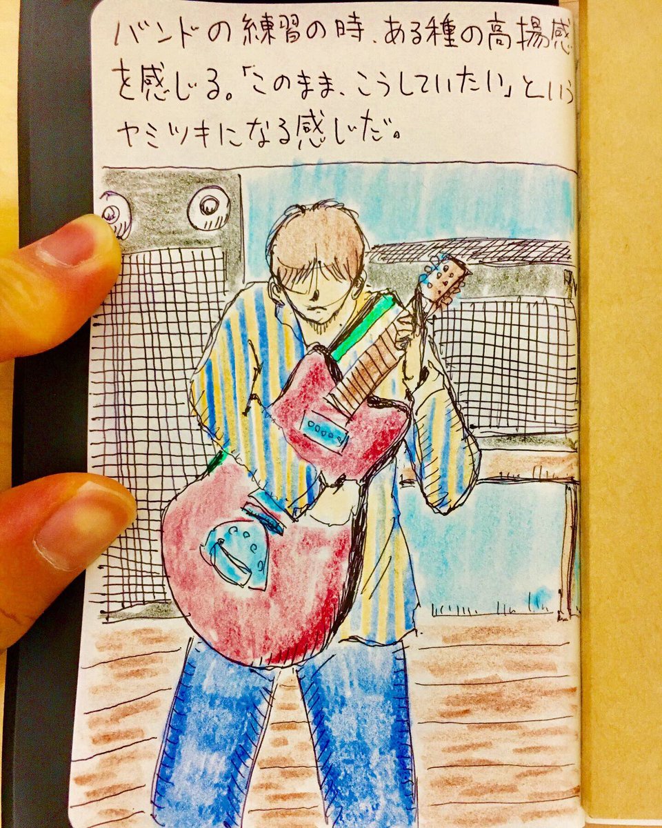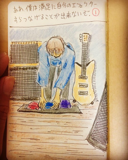 “Forever Gig” 2/2 11.Kiyoshi was shocked at his guitar’s roaring sound. This sound made him dazed and comfortable... instagram.com/p/B-6jN_LB8iZ/… #painting #イラストレーション #illustration #イラスト #illust #manga #漫画 #drawing #comics #art #guitar #ギター #色鉛筆 #colorpencil